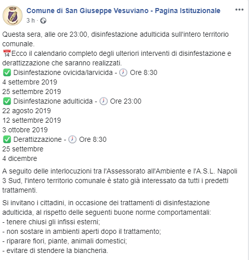 Questo il post pubblicato sulla pagina Facebook del Comune di San Giuseppe Vesuviano: