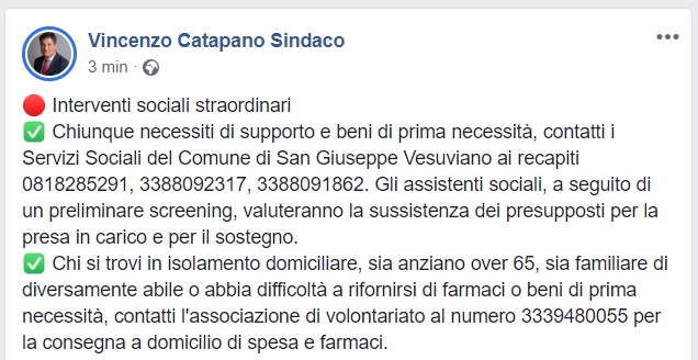 San Giuseppe Vesuviano. Catapano: "Interventi sociali straordinari"