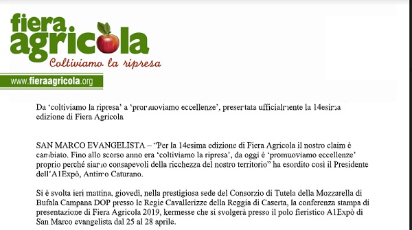SAN MARCO EVANGELISTA. Presentata la 14esima edizione di Fiera Agricola
