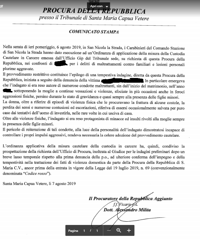 Questo il comunicato stampa inviatoci dalla Procura della Repubblica presso il Tribunale di Santa Maria Capua Vetere: