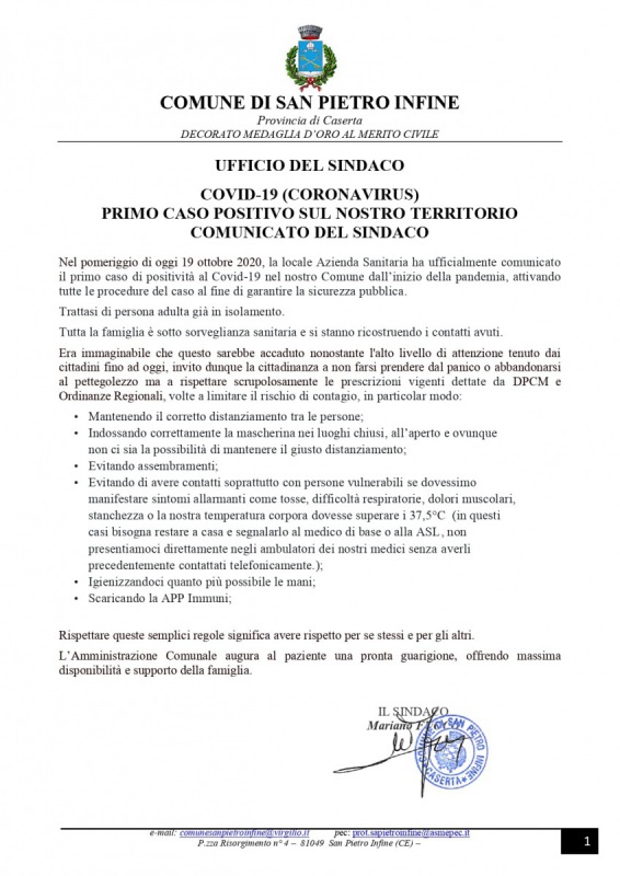 Lo apprendiamo dalla pagina Facebook 'San Pietro Infine: gli eventi, la città'.