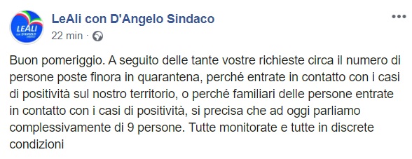 Questo quanto pubblicato sulla pagina facebook "LeAli con D'Angelo Sindaco":