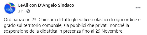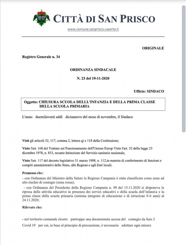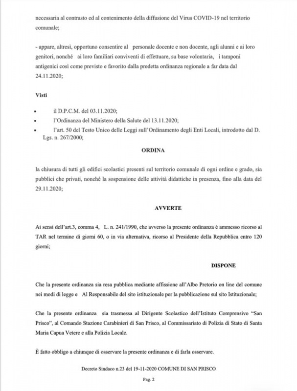 Questa l'Ordinanza del Sindaco D'Angelo: