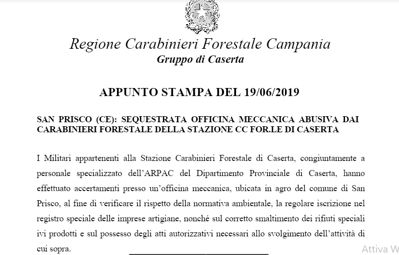 Questo parte del comunicato inviatoci dal Comando Provinciale dei Carabineiri di Caserta - Gruppo Forestale