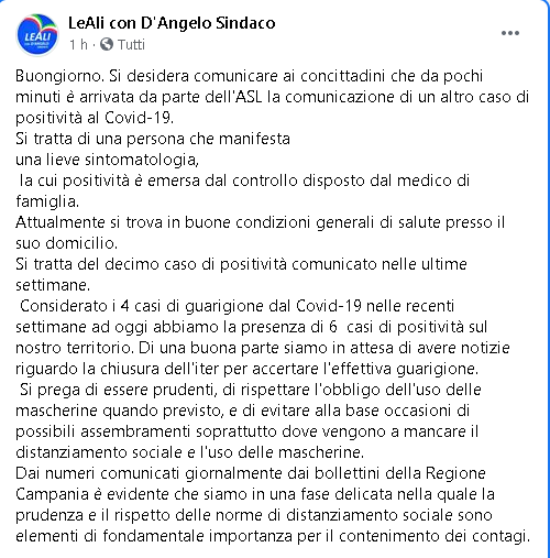 Lo apprendiamo dalla pagina facebook del Sindaco di San Prisco, LeAli con D'Angelo Sindaco.