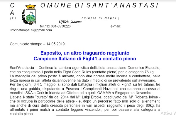 Questo il comunicato inviatoci dall'Ufficio Stampa del Comune di Sant'Anastasia.