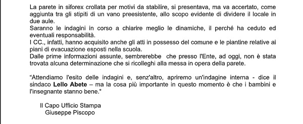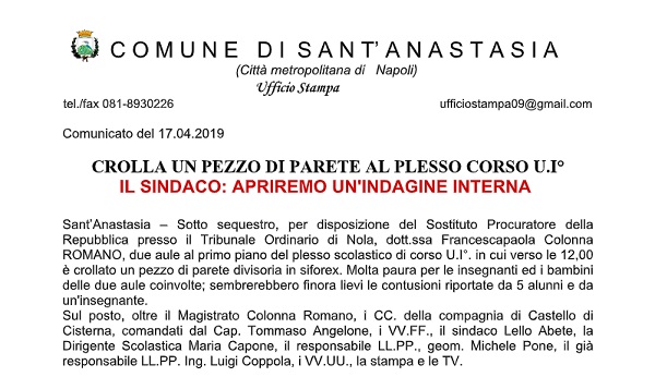 Questo il comunicato inviatoci dall'Ufficio Stampa del Comune di Sant'Anastasia.