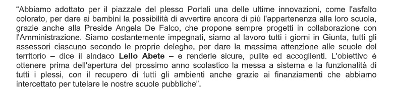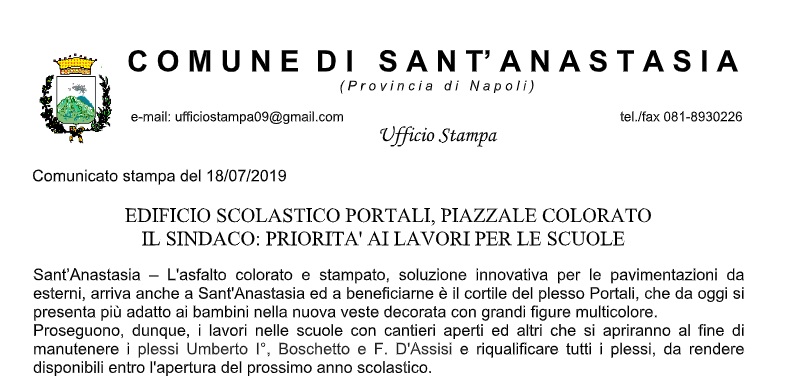 Questo il comunicato inviatoci dall'Ufficio Stampa del Comune di Sant'Anastasia.