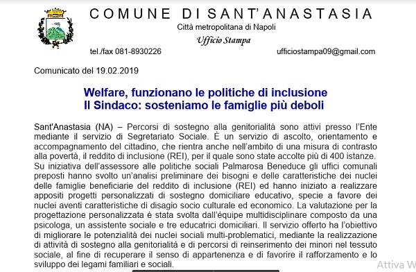 Questo il comunicato inviatoci dall'Ufficio Stampa del Comune di Sant'Anastasia.