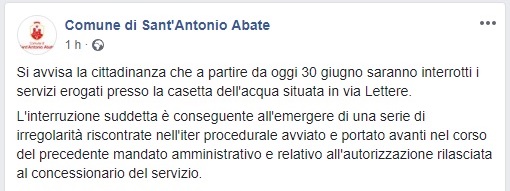 Ecco quanto apprendiamo in merito alla cessazione dei servizi di erogazione della casetta dell'acqua dalla pagina FB del comune.