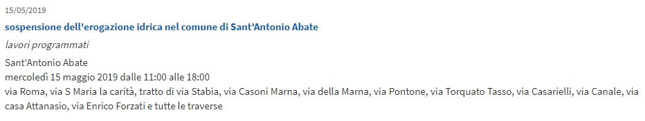 SANT'ANTONIO ABATE. Si prevede mezza giornata senz'acqua. Ecco le strade coinvolte