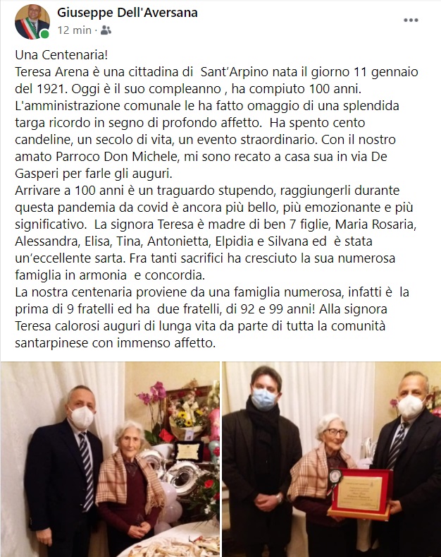 Questo quanto pubblicato sulla pagina facebook del Sindaco Dell'Aversana: