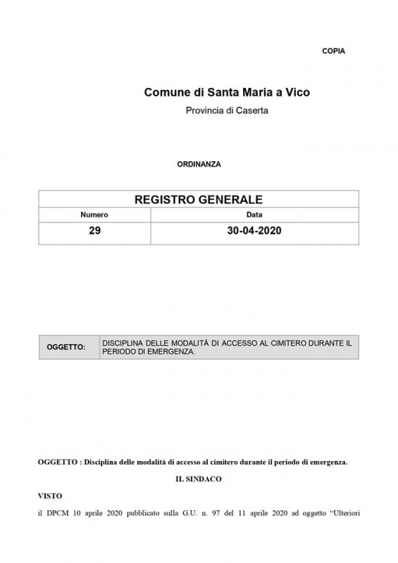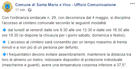 Questo il post pubblicato sulla pagina Facebook del Comune di Santa Maria a Vico: