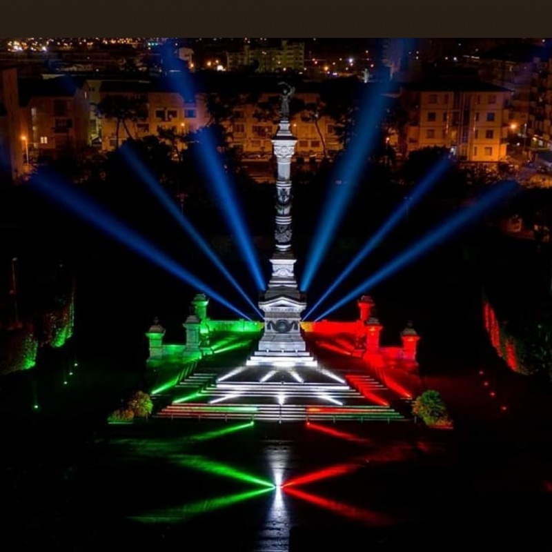Anche Santa Maria Capua Vetere festeggia la vittoria della nazionale italiana agli Europei. Nella foto lo spettacolo di luci della Villa comunale.