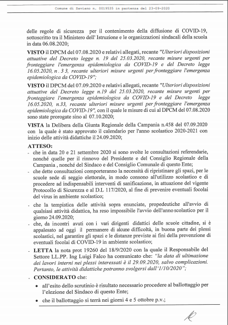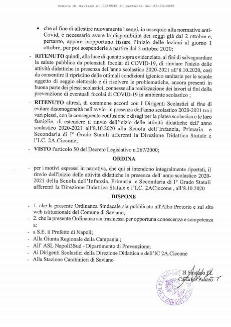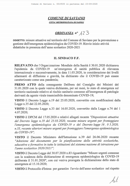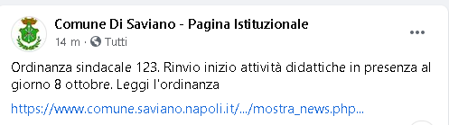 Lo apprendiamo dalla pagina Facebook Comune di Saviano-Pagina Istituzionale.