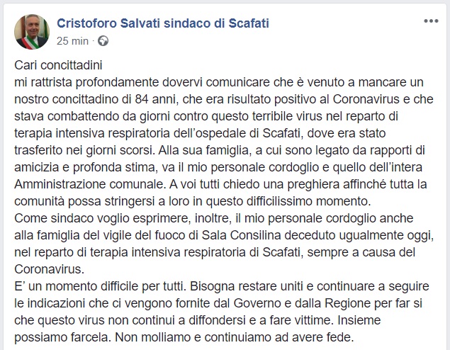 Questo quanto pubblicato dal Sindaco Salvati