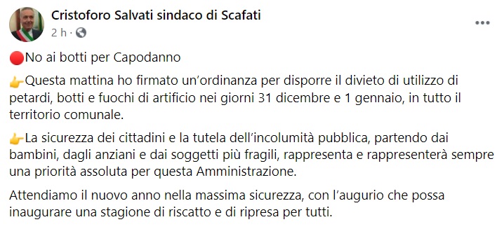 Questo quanto apprendiamo dalla pagina facebook del Sidnaco Salvati: