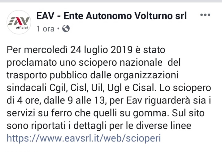 Questo quanto apprendiamo dal profilo FB dell'EAV