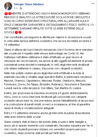 Lo apprendiamo dalla pagina Facebook di Giorgio Zinno, Sindaco di San Giorgio a Cremano.