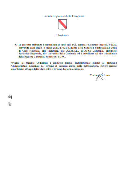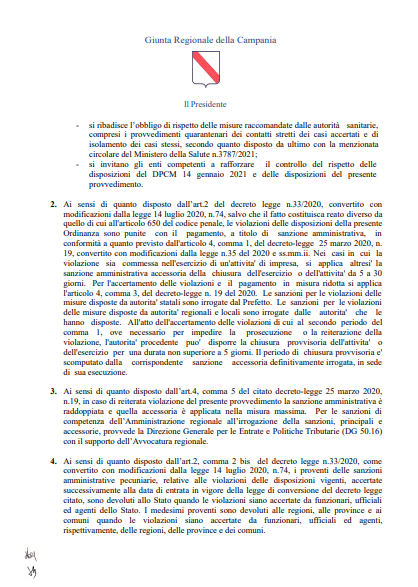 (Ruota il telefono per leggere il post Facebook e parte dell'Ordinanza della Regione Campania)