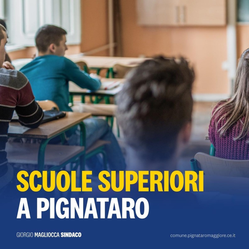 Questo quanto apprendiamo dalla pagina fb del Sindaco di Pignataro M. Giorgio Magliocca: "È ufficiale, la Regione Campania ha approvato l'apertura di una sezione distaccata a Pignataro Maggiore dell'Istituto Professionale di Stato, in particolare attivando un corso diurno - si legge nella nota - con indirizzo "Servizi per l'enogastronomia e l'ospitalità alberghiera", e un corso diurno con indirizzo "Agraria". Siamo felici di aver ottenuto questo storico risultato, portando finalmente la scuola superiore nel nostro paese, grazie anche al prezioso contributo del Consigliere Regionale Giovanni Zannini e dell'Assessore all'Istruzione, Politiche Giovanili e Politiche Sociali Lucia Fortini."