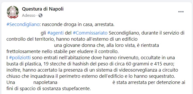 Questo quanto pubblicato sulla pagina facebook della Questura di Napoli