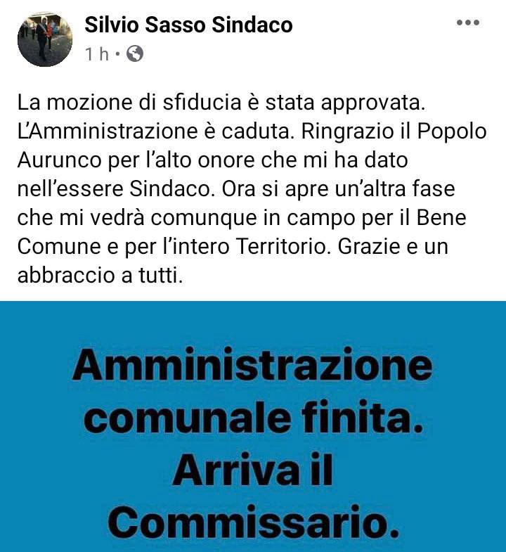 Questo quanto pubblicato sulla pagina facebook del Sindaco Sasso