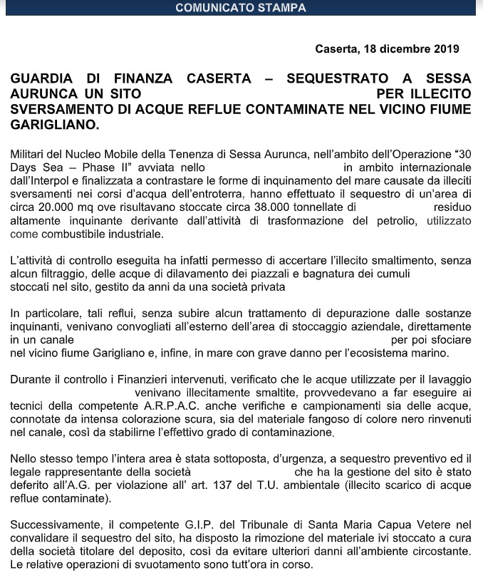 Pubblichiamo parte della nota stampa della GDF Caserta