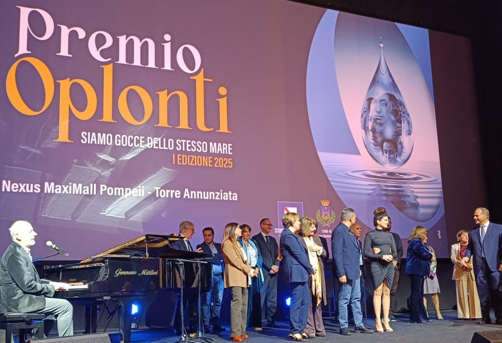 Venerdì 24 ottobre il Cineteatro Nexus - Maximall di Pompei - prosegue - ha ospitato la cerimonia di premiazione del "Premio Oplonti - Siamo gocce dello stesso mare" per coloro che si sono distinti per il loro impegno nella difesa dei diritti umani e nella salvaguardia del territorio.