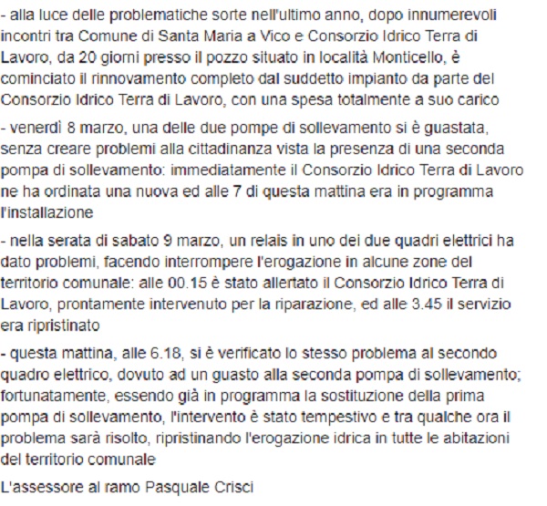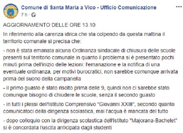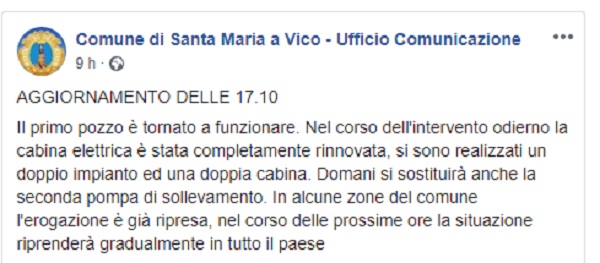 Questo il post pubblicato sulla pagina fb ufficiale del Comune di Santa Maria a Vico. A seguire gli aggiornamenti