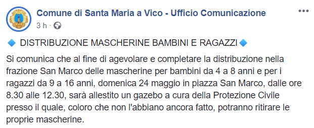 Questo quanto pubblicato sulla pagina facebook del Comune di SMAV: