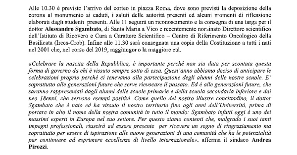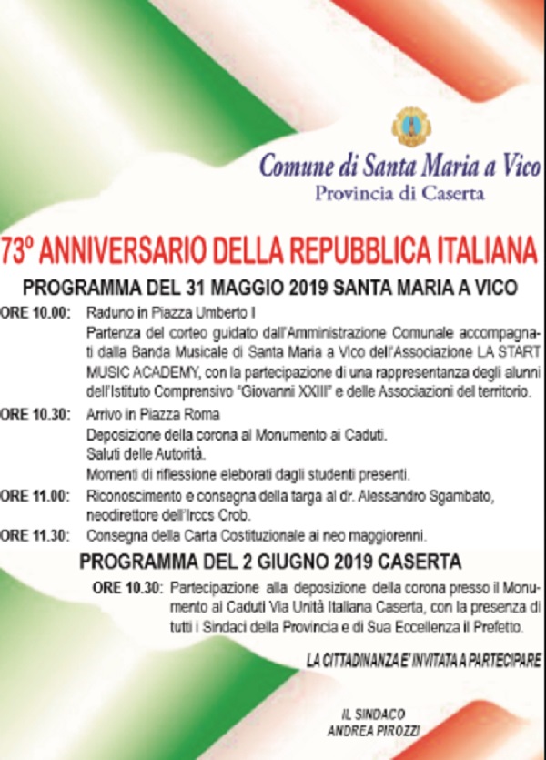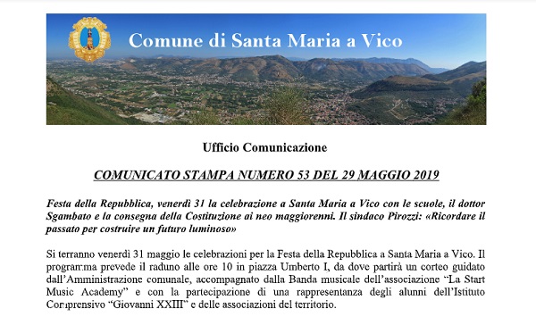Questo il comunicato inviatoci dall'Ufficio Stampa del Comune di Santa Maria a Vico.