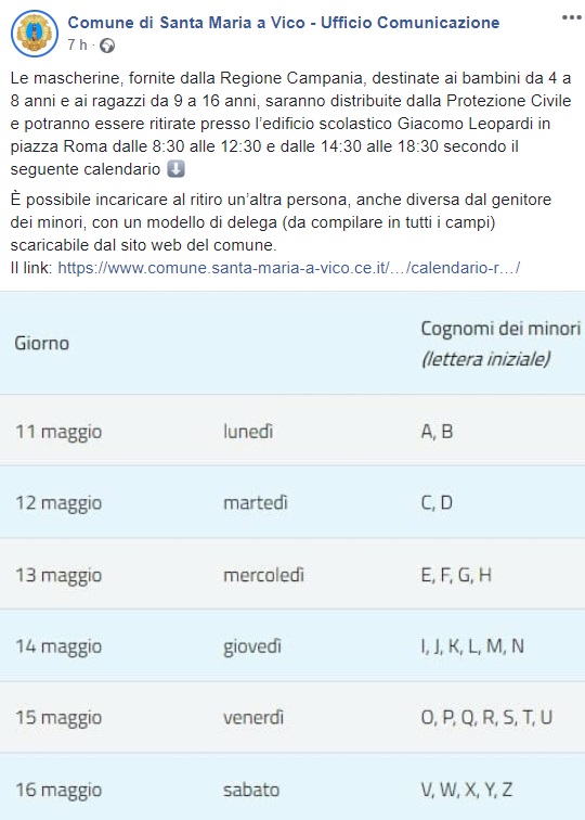 Questo quanto apprendiamo dalla pagina facebook del Comune di SMAV: