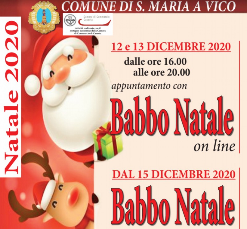 (www.comune.santa-maria-a-vico.ce.it/2020/12/una-videochiamata-da-babbo-natale). Nei giorni a seguire Babbo Natale farà visita a tutti i bimbi portando loro una dolce sopresa. Ma non finisce qui - si legge nella nota -. L’amministrazione comunale, infatti, programmato un’ulteriore iniziativa per la festa della Befana e destinata soprattutto alle famiglie in difficoltà: il giocattolo sospeso. Nei prossimi giorni chiunque lo vorrà potrà recarsi presso una delle attività commerciali che saranno indicate a breve sul sito del Comune ed acquistare doni che saranno poi consegnati da un gruppo di volontari. “Un modo – ha rimarcato l’assessore Cioffi – per far sentire la nostra vicinanza a tutta la comunità ed in special modo alle persone più deboli perché nessuno sia lasciato solo in questi giorni di festa. Non lasciamo - si legge nella nota - che questo virus ci porti via anche la magia del Natale”."