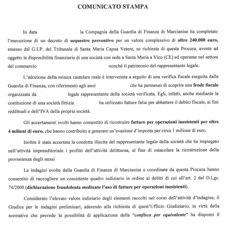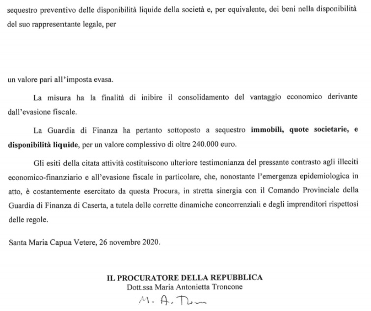 Pubblichiamo nota stampa della Procura di SMCV