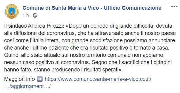 Questo quanto pubblicato sulla pagina facebook del Comune di SMAV: