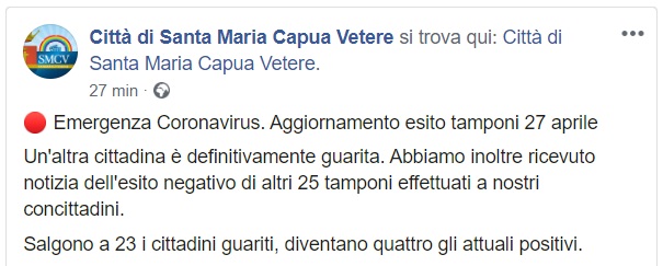 Questo quanto apprendiamo dalla pagina fb del Comune di SMCV