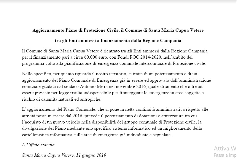 Questo il comunicato inviatoci dall'Ufficio Stampa del Comune di Santa Maria Capua Vetere.