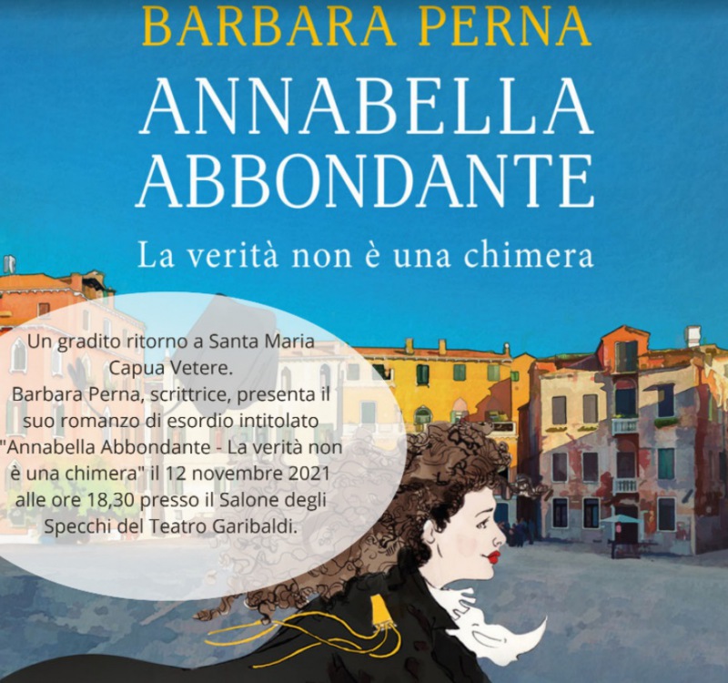 Pubblichiamo nota Ufficio stampa Santa Maria Capua Vetere: "Al Salone degli Specchi la presentazione del libro d’esordio del Giudice Barbara Perna. Venerdì 12 novembre appuntamento con l’autrice di “Annabella Abbondante. La verità non è una chimera”