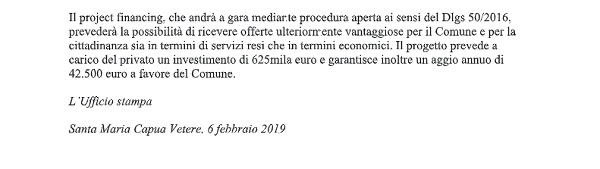 Questo il comunicato inviatoci dall'Ufficio Stampa del Comune di Santa Maria Capua Vetere.