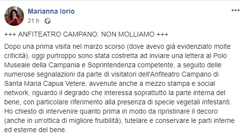 Questo il post pubblicato sulla pagina fb ufficiale dell'On. Marianna Iorio.
