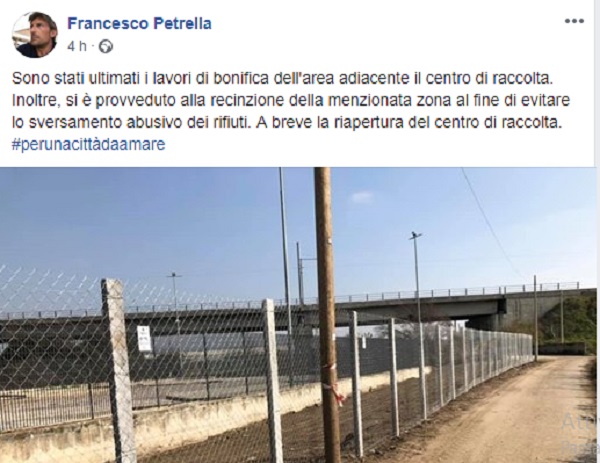 Questo il post pubblicato sulla pagina fb dell'Ass. Francesco Petrella.