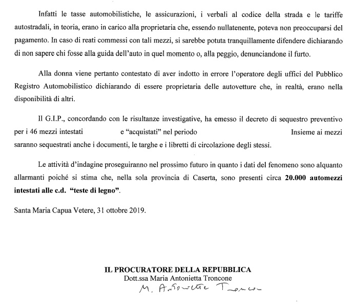 Pubblichiamo parte della nota stampa della Procura della Repubblica di SMCV