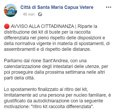 SMCV. Avviso ai cittadini. Riparte la distribuzione dei kit di buste per la differenziata. I dettagli