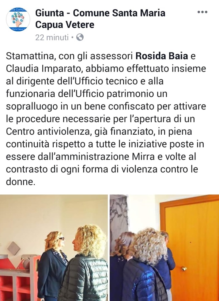 Apprendiamo dalla pagina Facebook della Giunta di Santa Maria Capua Vetere quanto segue