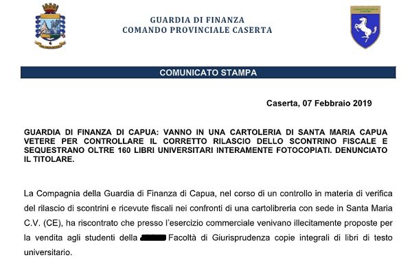 Questo parte del comunicato inviatoci dal Comando Provinciale della Guardia di Finanza di Caserta