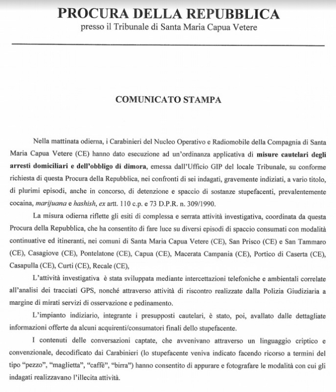 SMCV/Capua/Casagiove/Curti. "Plurimi episodi, anche in concorso, di detenzione e spaccio di sostanze stupefacenti". In 6 nei guai