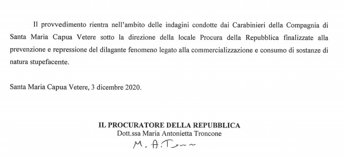 Pubblichiamo nota stampa della Procura di SMCV