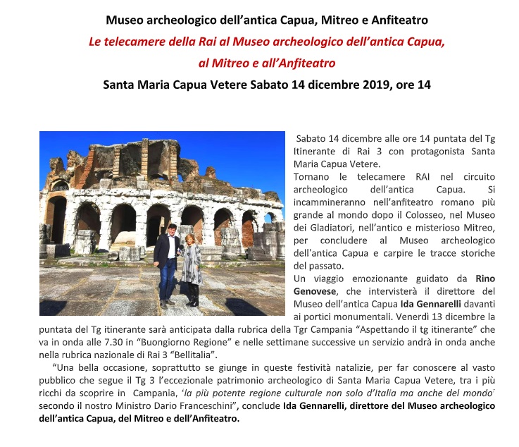 SMCV/Capua. Telecamere Rai nella CittĂ  di Santa Maria Capua Vetere e al Circuito archeologico dell'antica Capua