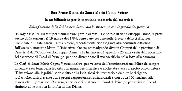 SMCV. Ci si mobilita per la marcia in memoria di don Peppe Diana